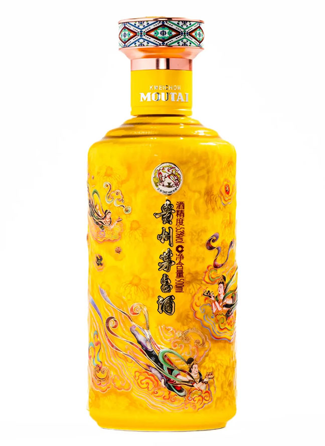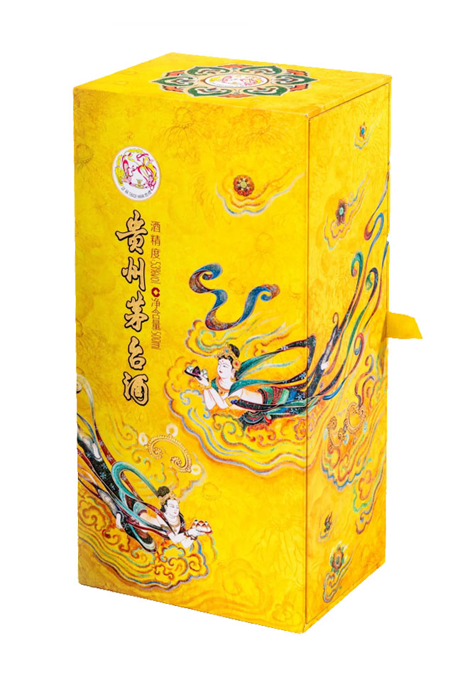 散花飞天”何许人也?众所周知,飞天茅台的商标出自敦煌壁画飞6天献酒图”,寓意友谊使者,是茅台酒出口的民族色彩与文化表达。散花飞天是敦煌壁画系列中唐代飞天的代表,鲜花环绕飞天仙女四周,有着吉祥、幸福、美好的祝福寓意。