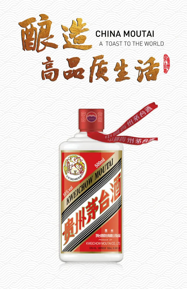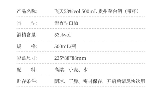 53%vol贵州茅台酒(经典) 产自贵州茅台酒地理标志保护核心产区,利用得天独厚的自然环境,以本地优质糯高粱、小麦、水为原料,采用科学独特的贵州茅台酒传统工艺精心酿制,以“酒勾酒”方式组合近200支不同酒龄基酒精心勾兑,历经五年而成,产品具有酱香突出、幽雅细腻、酒体醇厚、回味悠长、空杯留香持久的典型风格。