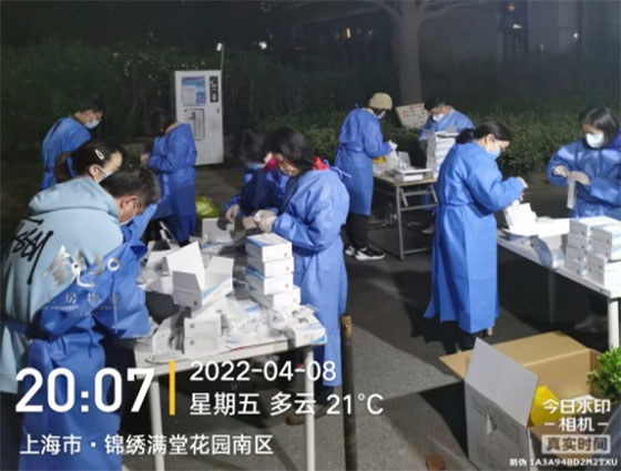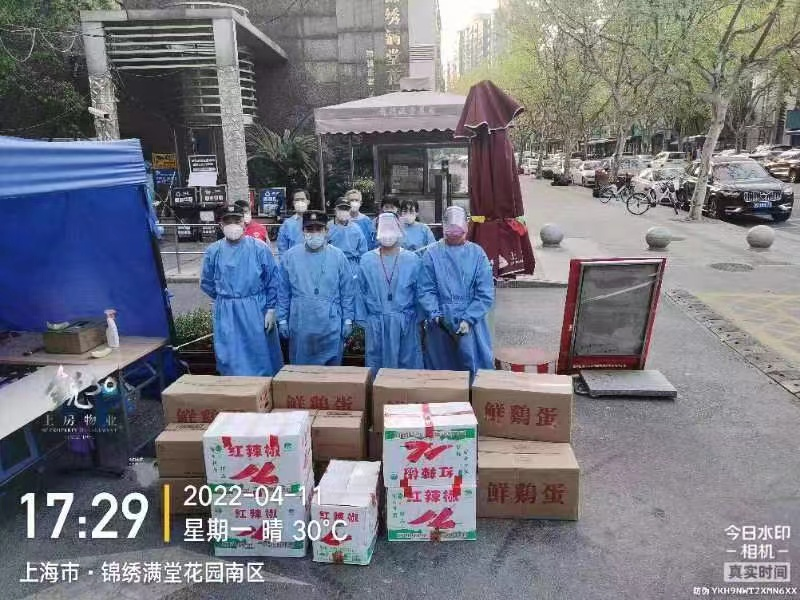 而在全市社区先后进入封控管理的情况下,各居委和小区物业成为抗疫最前线,不仅工作任务重、压力大,而且面临的各项困难棘手、急迫。国酒缘公司茅台专卖店所在的浦东新区锦绣满堂花园小区就因陆续发现多个新冠阳性病例而成为重点管控小区,自3月中旬起长期持续处于严格封闭管控状态,物业人员冲锋在前,坚守阵地,用科学的管控方式为业主筑起一道坚固的“健康墙”。