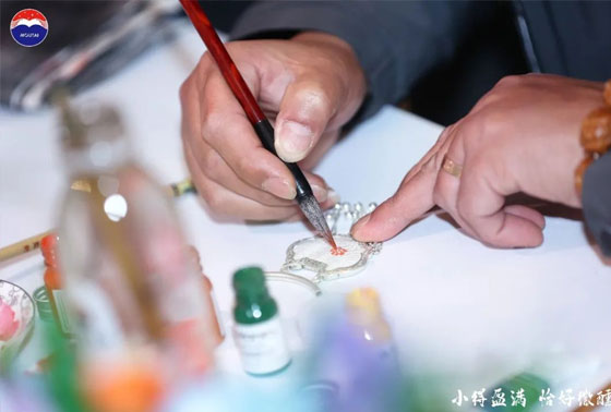 晚宴伊始,邀请到世界非物质文化遗产缂丝织造技艺传承人蔡霞明老师亲临晚宴现场,为大家讲述缂丝渊源和历史变迁,并亲自指导来宾一同体验演绎缂丝制作的工艺流程,结、掼、勾、戗的织造技法。现场作品展示出缂丝雍容华贵,巧夺天工之美。