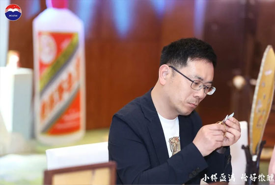 欣赏完缂丝传统工艺的瑰丽,感悟到精益求精的匠人匠心精神,以及它深厚的文化底蕴。上海天喔食品集团有限公司总经理龚玉雄先生带着大家对中国非遗文化的敬意,对茅台工匠精神的崇敬,为大家祝酒致辞;贵州茅台酒上海经销商联谊会会长苏小相先生也表达了他对53度飞天茅台酒的热爱之情,邀请嘉宾感受茅台酒的卓越品质,品味茅台酒的文化之美和生活之美。