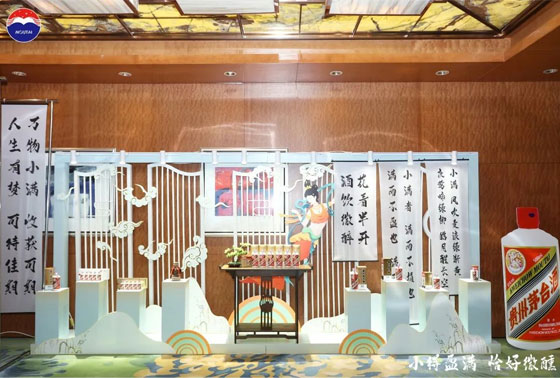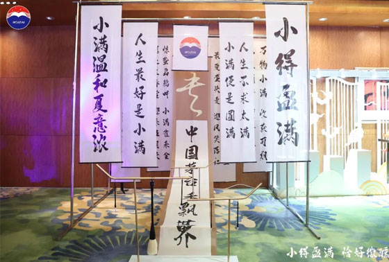 小满不仅诠释着自然的变化,也蕴含着美好的寓意与人生哲理,现场通过书法布幔的形式呈现出来。书法的美,源自汉字线条独特的结构方式与书写方式,天然具备时间节奏。如同历经千年文化历史的贵州茅台酒蕴含着深厚的中国传统文化底蕴,具有强烈的民族情感文化符号。